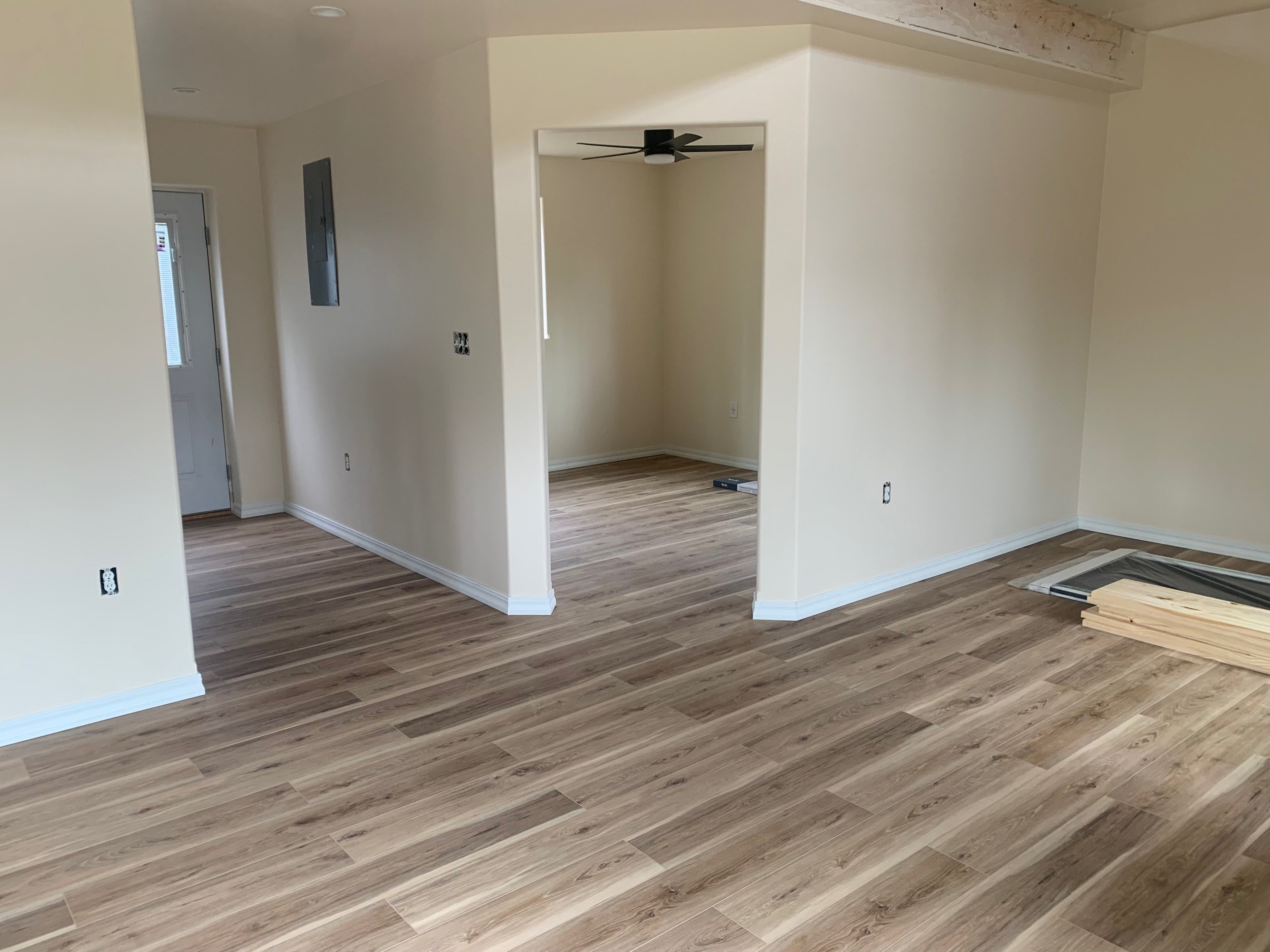 Sheetrock, trimwork, windows, doors, flooring, etc.